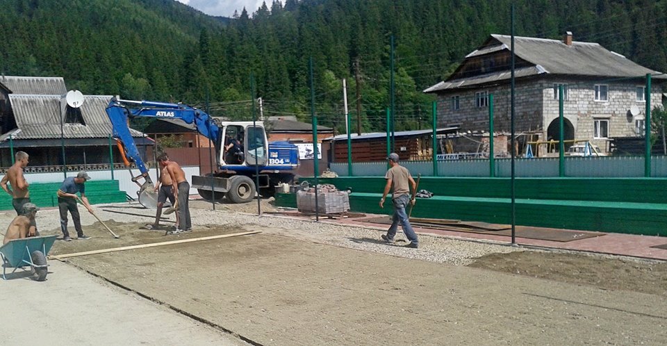 "Після двохтижневої паузи поновлено будівельні роботи на міні-футбольному стадіоні "Плай Арена". У суботу повністю завершено настил основи під штучну траву, а сьогодні робітники приступили до завершальних робіт із трибунами", - написав Олег Дзем'юк.