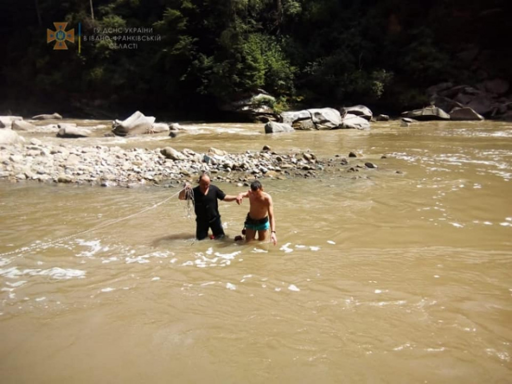О 14:33 яремчанські рятувальники за допомогою рятувального обладнання переправили чоловіка на суходіл, від медичної допомоги він відмовився.