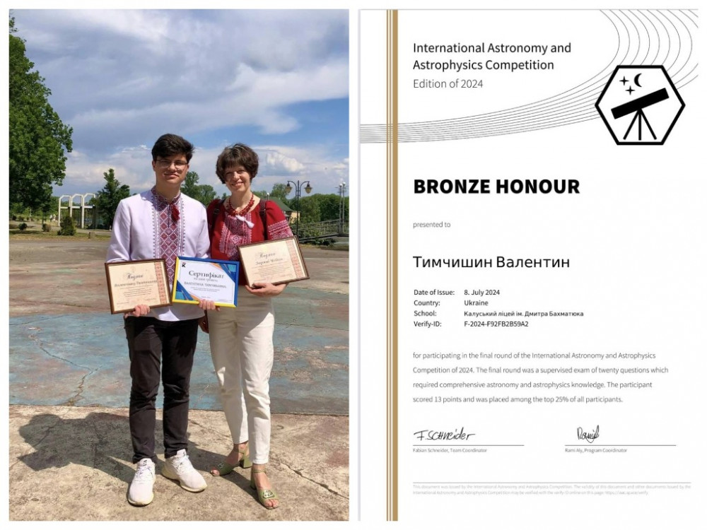 Випускник Калуського ліцею ім. Дмитра Бахматюка Валентин Тимчишин — переможець міжнародного наукового конкурсу з астрономії та астрофізики International Astronomy and Astrophysics Competition (IAAC).
