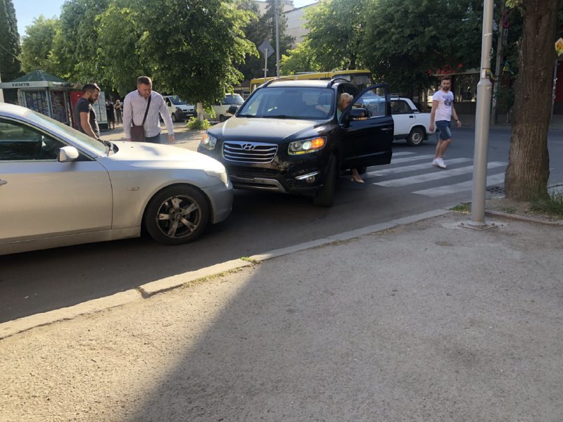 "Жінка за кермом Hyundai по зустрічній виїхала з Чорновола на Сахарова і вдарила BMW, півториполоси перекрито. За 1 хв до цього Vito зачепило пижик тут же на зупинці", - йдеться у повідомленні.