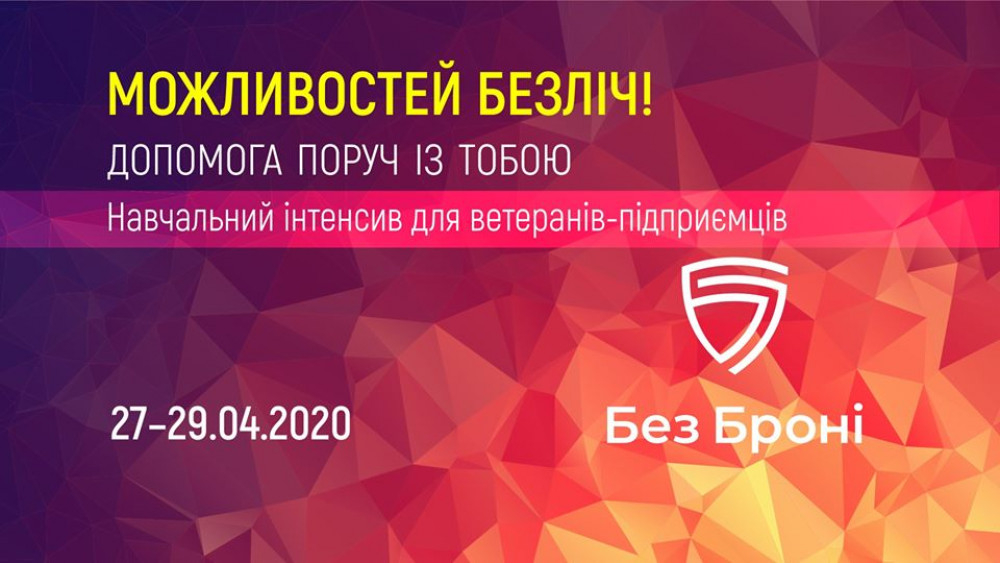 З 27 по 29 квітня проєкт «Без Броні – єдина база ініціатив для ветеранів» організовує триденний навчальний інтенсив для ветеранів, які хочуть відкрити власну справу чи зробити свій бізнес успішним.