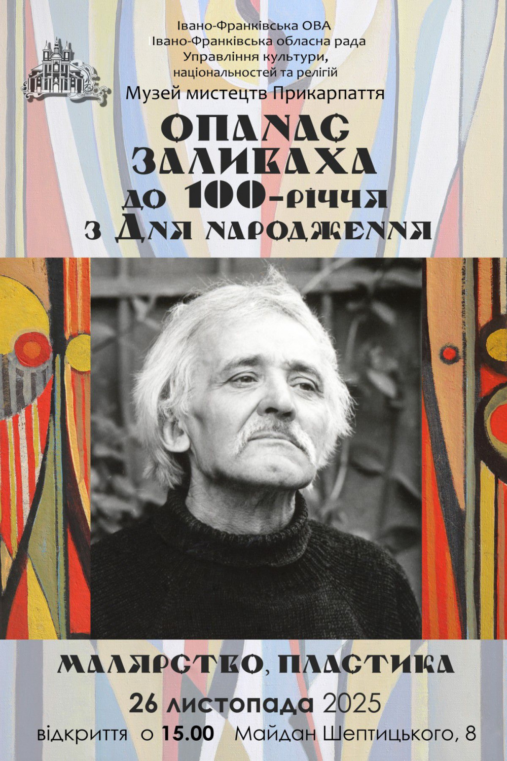 26 листопада о 15.00 Музей мистецтв Прикарпаття запрошує на відкриття виставки творів Опанаса Заливахи до 100-річчя від дня народження митця, погашення марки за участю представників Укрпошти, нагородження медалями до 100-річчя від дня народження Опанаса Заливахи.