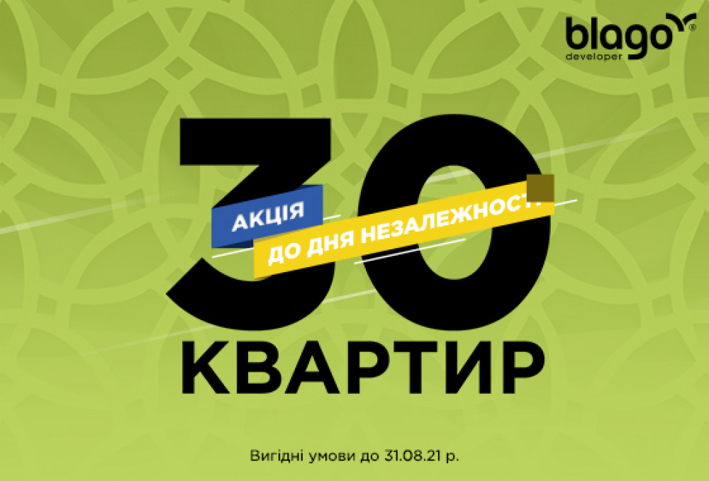 Найвигідніше купувати квартиру у провідній будівельній компанії Івано-Франківська blago developer, яка підготувала унікальну пропозицію. Лише до кінця серпня забудовник пропонує знижку до 102 300 грн на 30 квартир у 7 житлових комплексах: житловий масив Паркова Алея, ЖК Comfort Park, район Manhattan, містечко Соборне, ЖК Авторський, ЖК Family Plaza, ЖК Main House. Визначним фактом є те, що компанія присвятила акцію 30-річчю Незалежності України.