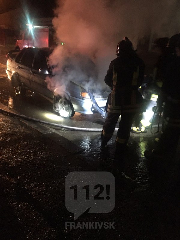 15 травня о 01.36 год. м. Івано-Франківськ, вул. Чорновола - пожежа легкового автомобіля «ВАЗ 21015». Фото - телеграм-чат "Чат 112".