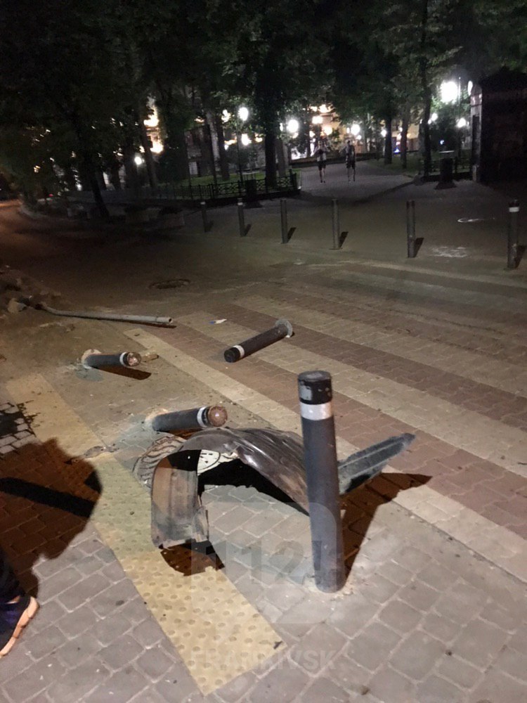 Минулої ночі позашляховик Subaru потрощив стовпчики та знаки на вулиці Грушевського.