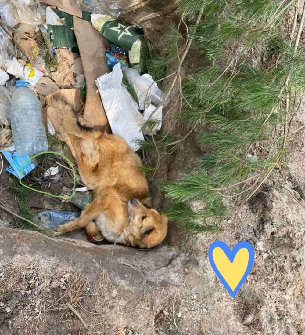 Лиса, так звати пса, знайшли у ямі зі сміттям. Місцеві хотіли відразу врятувати чотирилапого друга, але вчасно помітити, що песик замінований.