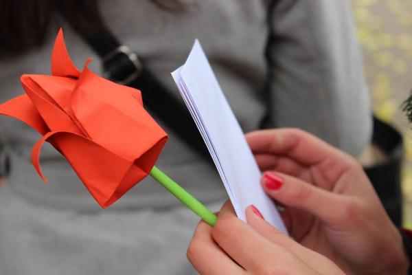 У центрі Івано-Франківська група волонтерів організувала флеш-моб, завданням якого було подарувати жінкам натхнення за допомогою конвертиків із мотиваційними листами. Просто посеред вулиці молодь роздавала усім бажаючим привітальні листівки та квіти зроблені власноруч із паперу.