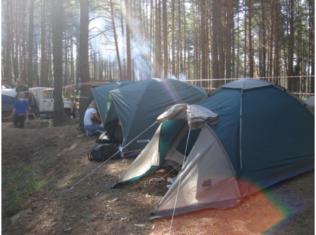 Горів дерев’яний будиночок лісників на площі 20 м.кв. та 2 військові намети на площі 80 м.кв. в яких відпочивали діти (8-17 років) з військово-патріотичного табору Золоті леви «Чорна сотня».