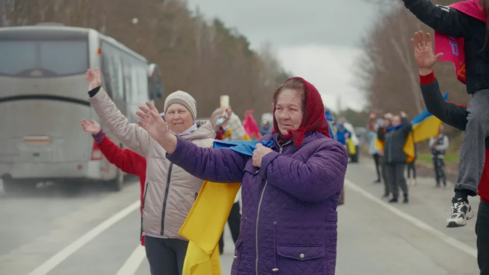 Коли колона нарешті з’являється, Юрій вмикає гімн на повну потужність, а люди здіймають стяги. Зі звільненими українцями, які виснаженими очима дивляться у вікна, селян розділяє лише скло, але емоційний зв’язок у цей момент є нерозривним.