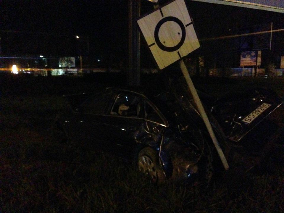 Автомобіль злетів з дороги на кільце, зачепив дорожні знаки та врізався в опору однієї із рекламних конструкцій. Про це в оперативному чаті від Auto.Life.IF та Frankivsk 112 повідомляють очевидці, передає кореспондент Бліц-Інфо.
