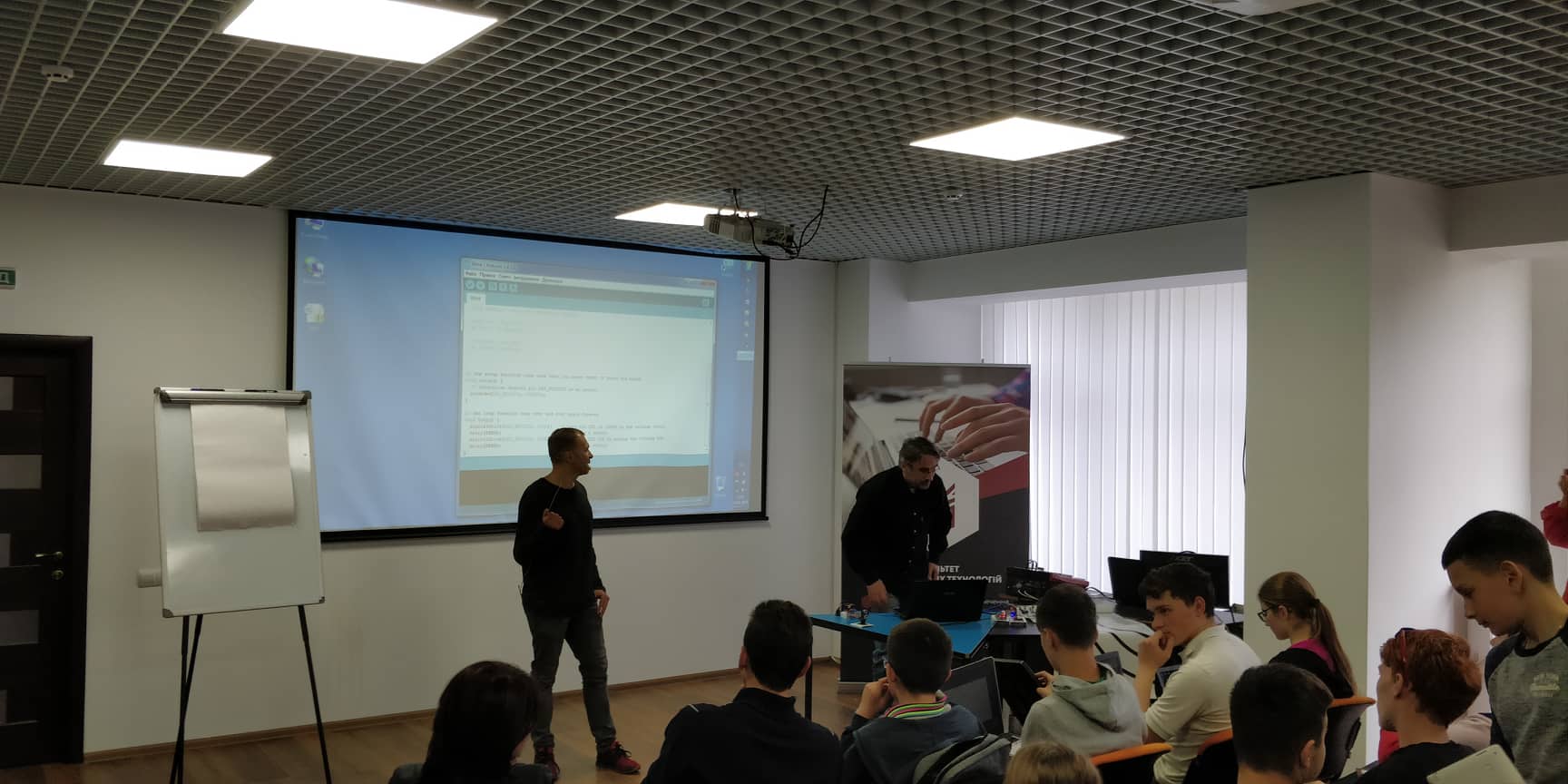 Серед учасників-школярів були охочі навчитися конструювати, програмувати та керувати Arduino роботами. Зустріч була розрахована на новачків в мікроконтроллерах/електроніці, кожен бажаючий мав можливість підключити різні девайси до Arduino і проекспериментувати, як взаємодіє з ними програмний код.