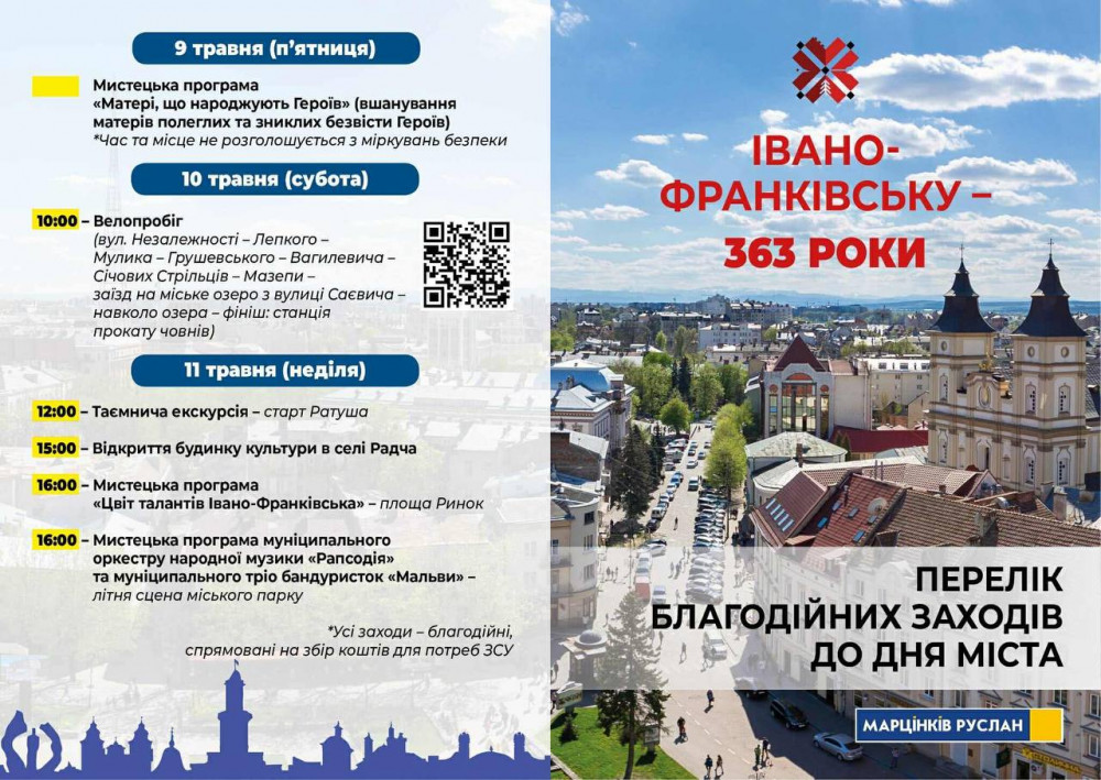 Міський голова Руслан Марцінків оприлюднив програму заходів до відзначення Дня міста Івано-Франківська.