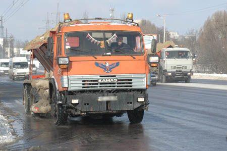 Як івано-франківські комунальники посиппають дорогу
