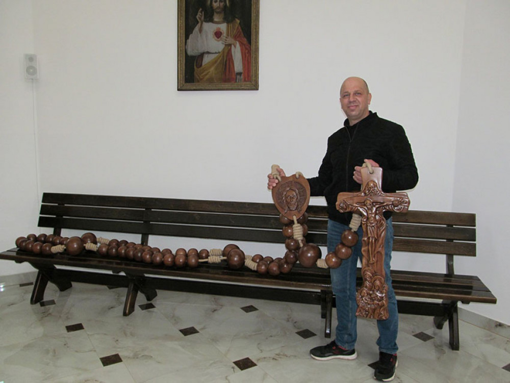 – Наприклад, загальна довжина використаного шнура сягає двадцяти п’яти метрів, на вервиці розташовано п’ятдесят малих і шість великих зернят, а також хрест із розп’яттям. Ту вервицю, яку отець Анатолій привозив з Івано-Франківська, було зроблено з дуба, тож і важила відповідно. Ми ж хотіли, щоб наша вервиця була легкою і її могли в часі духовних мандрівок селом носити діти. Тож для її виготовлення вибрали вільху – і міцну, і легку деревину. Голинська вервиця важить до тридцяти кілограмів. Наше село велике, тож будемо з вервицею під духовним проводом отця Анатолія, який вміє гуртувати і навертати людей, молитися гуртом, сільськими вулицями, за мир в Україні, порозуміння і єдність в громаді. А диво-вервиця зберігатиметься в нашому храмі і стане його молитовною візитівкою та мистецькою окрасою інтер’єру.
