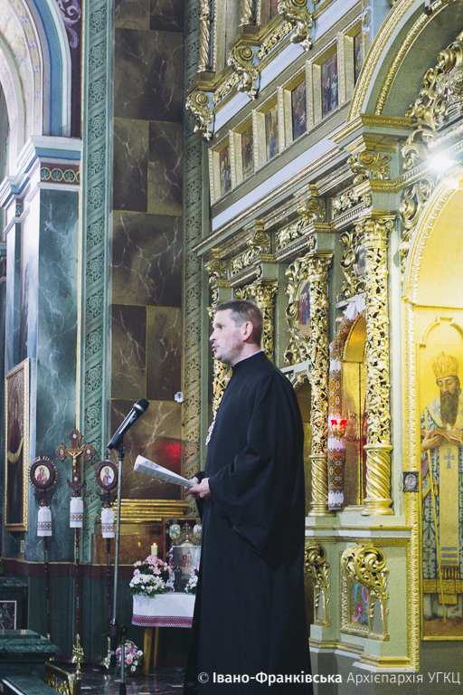 Головну ж «родзинку» організатори зберегли на вечір, коли відразу 4 колективи: «Київ», «Орея», «Галицькі передзвони» та «Воскресіння» презентували франківцям та гостям столиці Прикарпаття твір Якова Яциневича «Божественна Літургія». В цьому їм допомагав священик собору о. Іван Жук.
