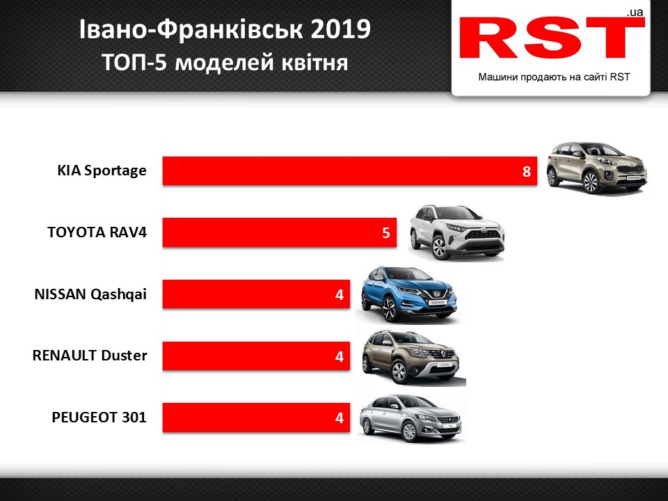 Сума покупок у регіоні минулого місяця склала $2,5 млн, якщо не враховувати ціни додаткового обладнання. Серед автомобільних марок найбільшим попитом користувалися машини Toyota. Прикарпатці купили 13 автомобілів цієї мароки на суму $500 тис. Також популярними були Renault і Kia, – повідомляє сайт з продажу автомобілів RST.ua.