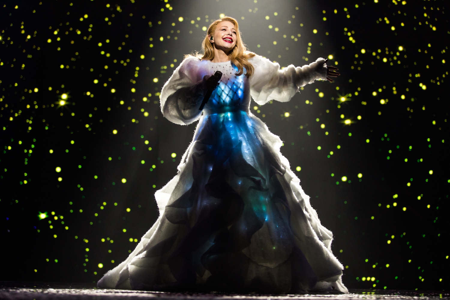 У цій сукні співачка разом з дитячим хором заспівала пісню «Україна - це ти», що стало одним з найбільш чуттєвих моментів концерту. Глядачі підспівували Тіні Кароль і засвітили тисячі ліхтариків в залі Палацу спорту.