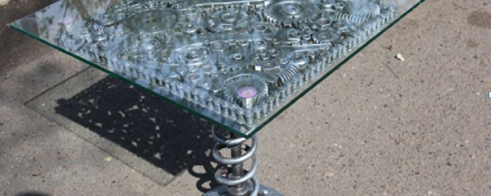 "Ми з моїм майстром взяли простий металобрухт: старі ключі, шестерні, пружини, ланцюг, ресору, - каже хлопець. - Відмили, відчистили їх, відполірували і склали столик. Було важко зварювати, адже деякі деталі дуже маленькі. Така техніка називається stim-pank. У нашому училищі інші діти створили у цій техніці гітару та морського коника".