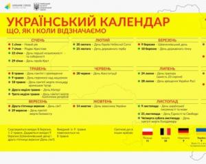 Інститут національної пам'яті пропонує відзначати наступні державні свята, які є неробочими днями: Шевченківський день – 9 березня; День пам'яті та примирення – 8 травня; День Конституції України – 28 червня; День незалежності України – 24 серпня; День сім'ї – друга п'ятниця вересня; День захисника України – 14 жовтня.
