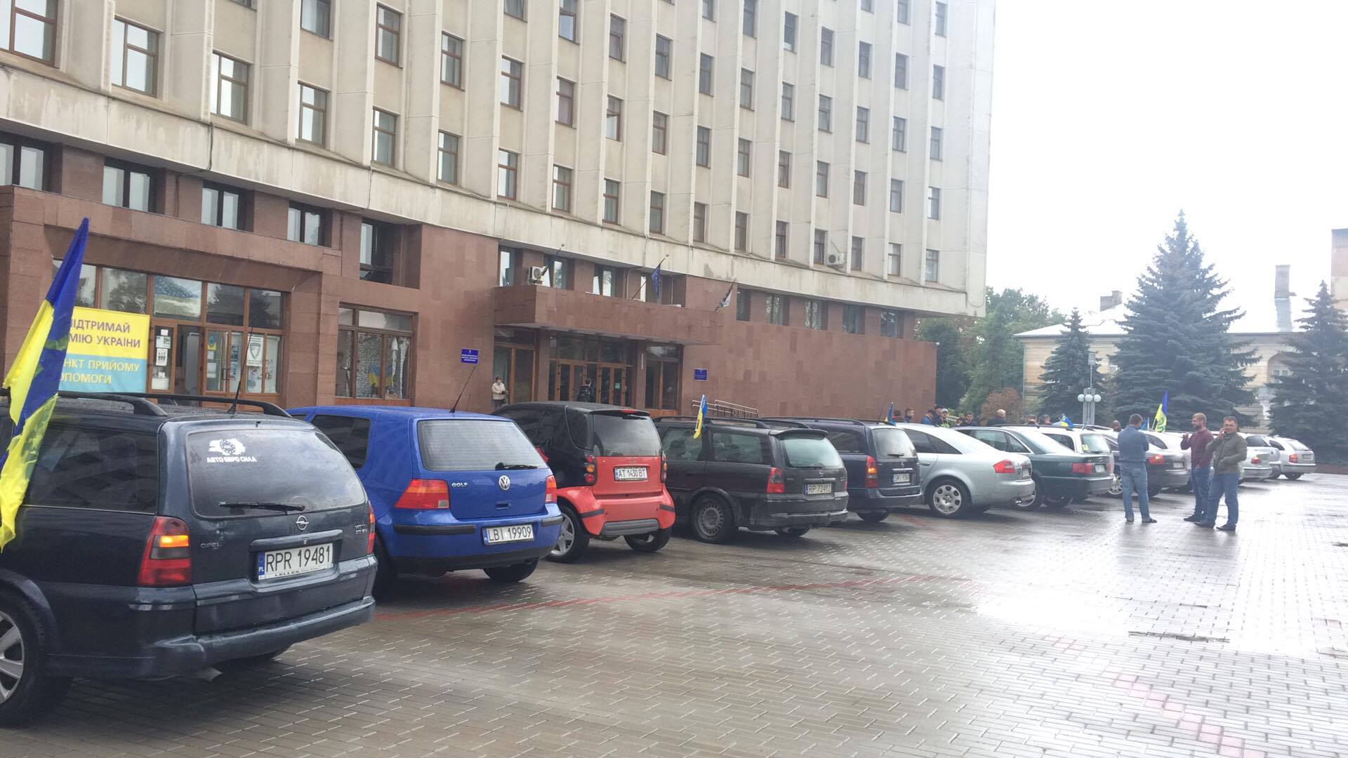 Згодом вони зібралися під стінами ОДА. До них також приєдналися і автобителі на українських номерах.