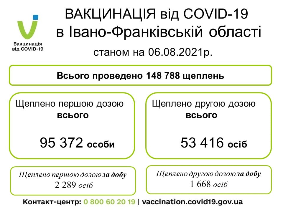 З 5 серпня в Івано-Франківській області проведено 3 957 щеплень. Загалом в області провели 148 788 щеплень.