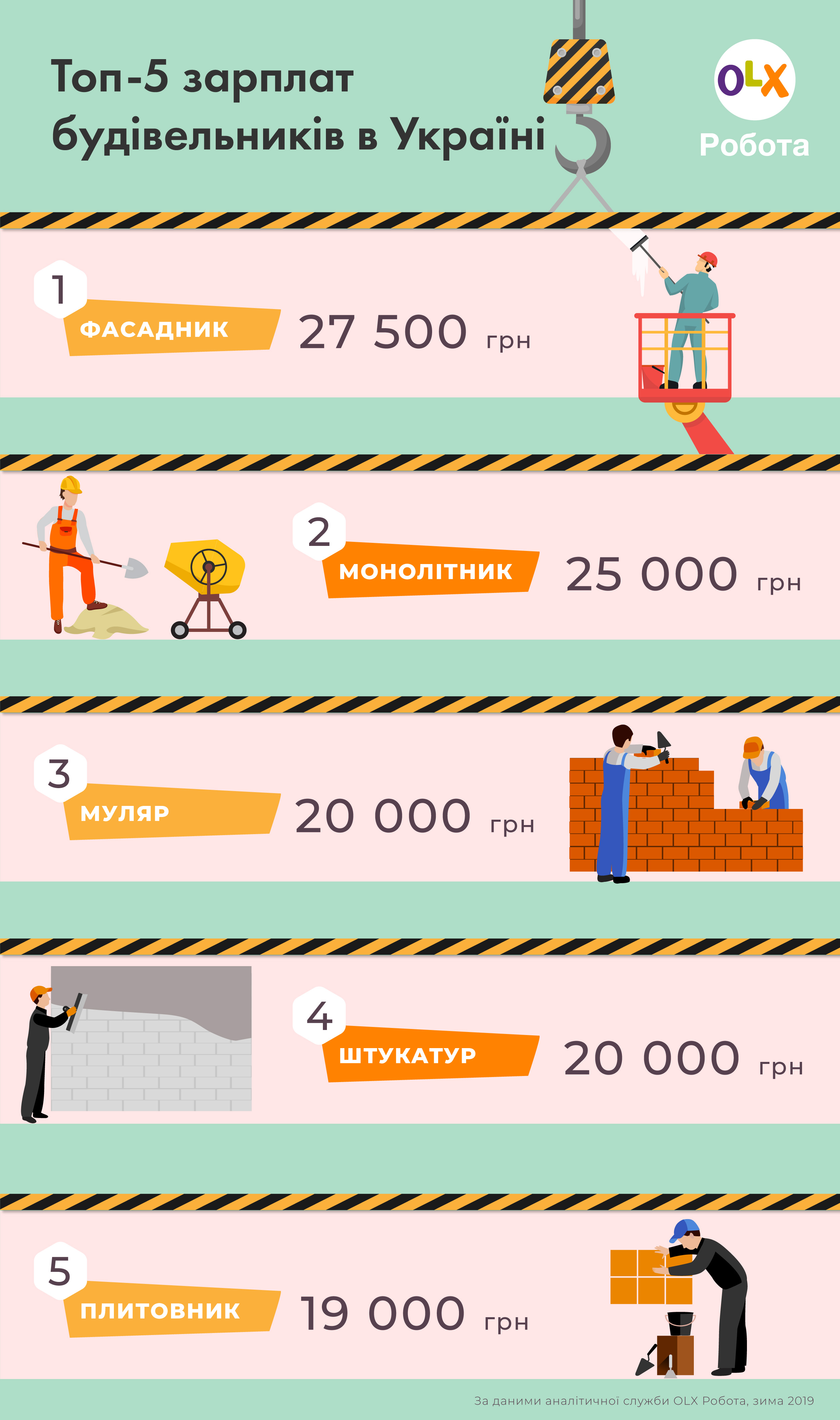 За даними аналітиків OLX, найвищий заробіток серед будівельників у фасадників. Взимку їм платили майже стільки ж, скільки і за кордоном - 27 500 грн. Щодо регіонів, найбільше отримували працівники Львівської області.