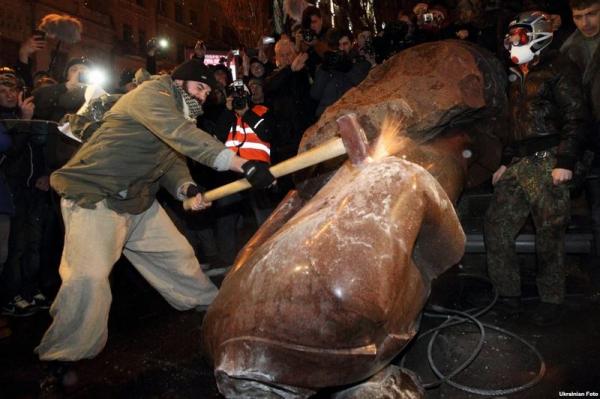 Затриманий під час повалення пам'ятника Леніна Олександр Солоненко визнав свою вину і його випустили з-під арешту.