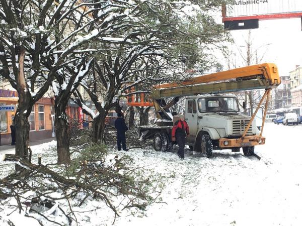 "Зелене господарство" продовжує обрізати дерева, що постраждали від снігової негоди у Франківську