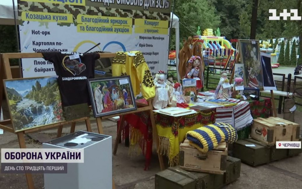 А в Чернівцях матері та дружини бійців, які боронять країну від росіян, розгорнули просто неба благодійні ятки: з одягом, саморобними прикрасами, картинами, вишиванками та смаколиками.