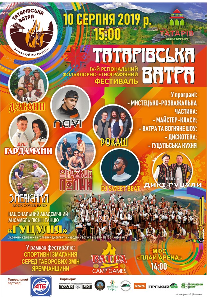 - 14.00 - відкриття змагань серед таборових змін Яремчанщини "Ватра Camp Games", стадіон "Плай Арена";