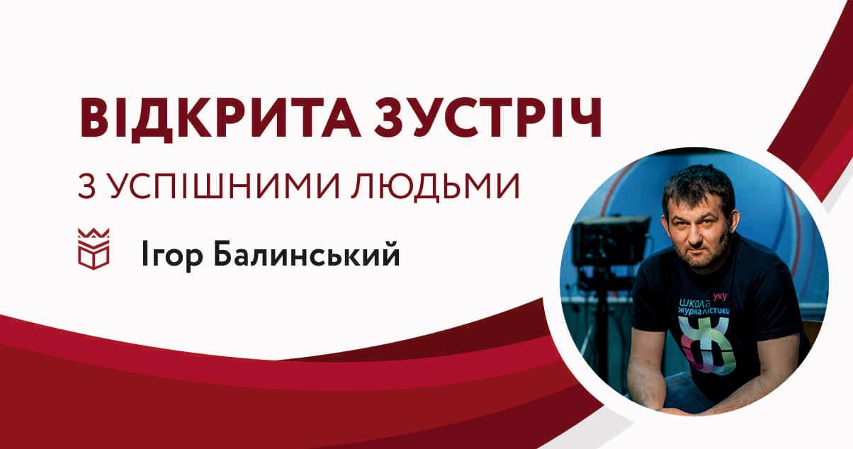 21 березня об 11.30 год. в рамках проекту Університету Короля Данила «Відкрита зустріч з успішними людьми» Ігор Балинський проведе майстер-клас «Персонально. Глибоко. Зрозуміло: як у регіональних медіях розповідати про складні та важливі проблеми».