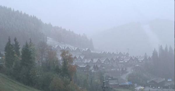 Протягом ночі високогір’я Карпат засипало снігом. Він продовжує падати і досі на Драгобраті та Буковелі.