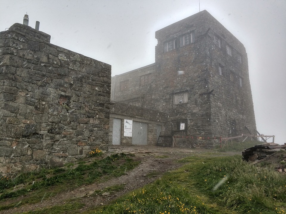 Станом на 14:05 10 липня на горі Піп Іван Чорногірський хмарно, сніг з дощем, вітер західний 7-8 м/с. Температура повітря 3°C.