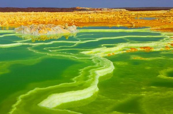 Кратер Даллол – найспекотніше місце на Землі: середньорічна температура тут становить 34 градуси Цельсія. У такій спеці і такому агресивному середовищі не спроможна існувати жодна форма життя, крім бактерій. Саме вони і забезпечують яскраві кольорові спогади кожному відвідувачу цього непривітного місця.