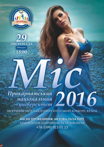 У вівторок, 29 листопада, в Івано-Франківську відбудеться щорічний конкурс краси “Міс Прикарпатський національний університет 2016”. За титул найкрасивішої змагатимуться 12 чарівних дівчат.