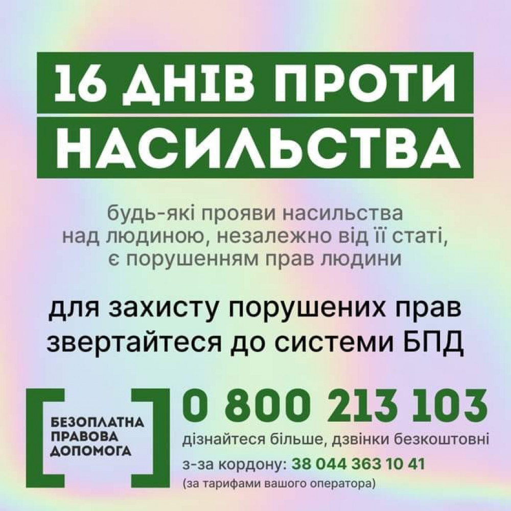 16 днів проти насильства: Як отримати безплатну правову допомогу?