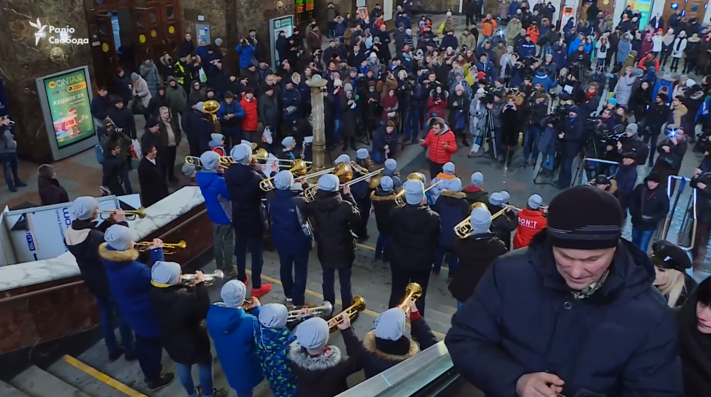 25 січня в холі Центрального залізничного вокзалу Києва у форматі флешмобу святкували 100-річчя створення Української Республіканської Капели (УРК)
