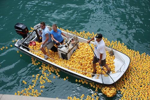 Жовті іграшки випустили у воду із величезних вантажівок. Так у Чикаго відзначили 11-ий щорічний фестиваль гумових каченят Windy City Rubber Ducky Derby.