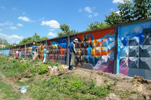 З ініціативи директора Стефанії Сидорук викладачі Малої академії народних ремесел за три дні намалювали вздовж алеї Небесної Сотні у Галичі патріотичне панно.