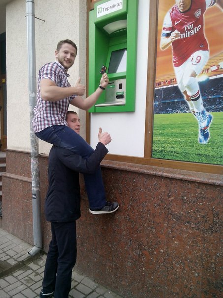 "Что мне снег, что мне зной, что мне дождик проливной (чи банкомат на висоті двох метрів), когда мои друзья со мной", - підписані фото.