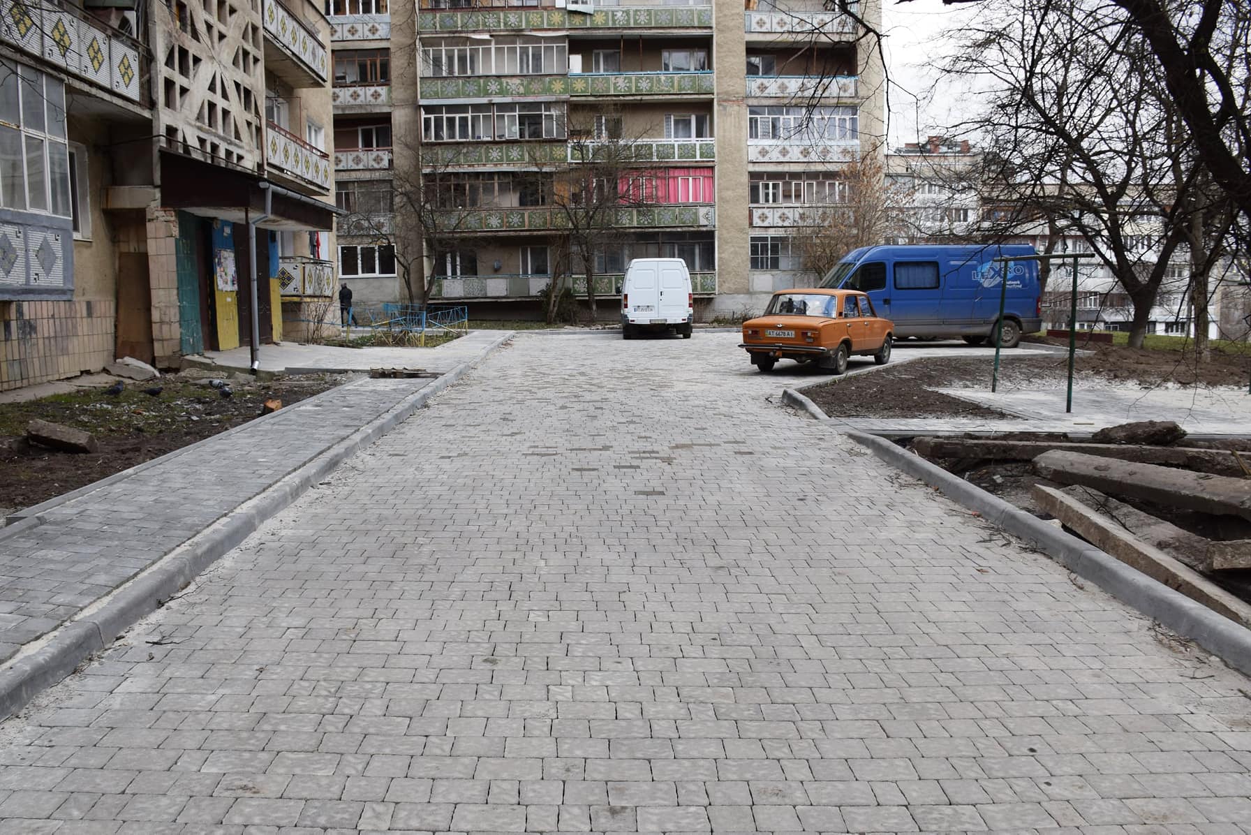 Понад 1200 квадратних метрів пішохідної зони та автомобільну стоянку облаштовують у дворі на вул. Галицькій, 132 корпус 1, 2, 3.