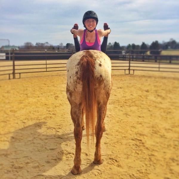 Про це повідомляє Znaj.ua з посиланням на Мashable. 27-річна спортсменка виконує верхи на коні навіть найскладніші асани - пози йоги.