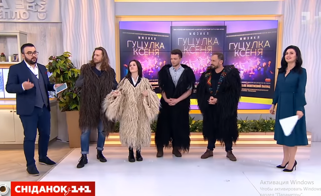 Режисер "Гуцулки Ксені" Ростислав Держипільський та актори Валерія Мочарська, Юрій Вихованець та Сергій Лазоновський – у студії Сніданку.