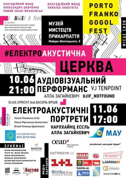 Опис: Музиканти з інструментами та композитори із різноманітними електронними девайсами розмістяться на місці колишнього алтаря, барокові ікони та скульптури оживуть з відеопроекціює Vj-group Tenpoint Oleksiy Tyshchenko, музика Georgiy Potopalskiy, Alla Zagaykevych та Karlheinz Essl вступатиме у діалог із десакралізованою будівлею, створючи нове синтетичне бароко: українське, електроакустичне, аудіовізуальне, станіславське...