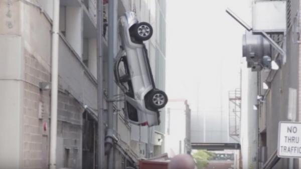 Автівка вилетіла з 9-го поверху, водій дивом врятувався: опубліковано вражаюче відео