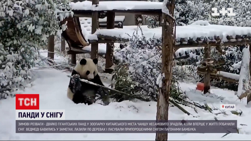Ведмеді бавились у снігових заметах, лазили вверх і вниз по деревах і ласували припорошеними снігом пагонами бамбуку. Працівники зоопарку кажуть, така холодна приправа пандам дуже сподобалась, йдеться в сюжеті ТСН.