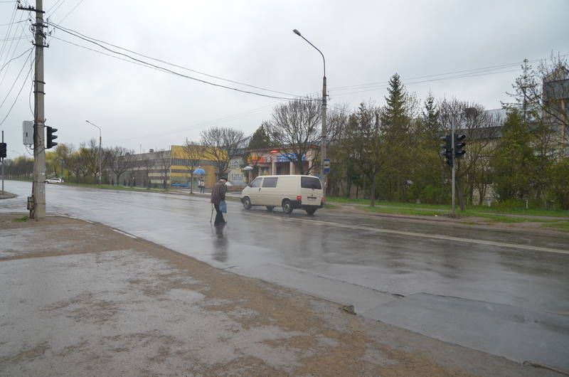 Про те, що ми на місці пішохідного переходу, дізнаємося з попереджувального знака для водіїв на узбіччі і темного світлофора, бо від «зебри» вже й сліду не залишилося. Люди, вийшовши з міського автобуса, то ліворуч, то праворуч крутять шиями — надіються, що хтось із гречних водіїв таки пригальмує і пропустить через шосе на протилежний бік. Звісно, через якийсь час якась добра водійська душа змилосердиться — люди враз забудуть про свої роки і немочі та, як ошпарені, кинуться долати швидкісний прогін на вулиці Коновальця до торгового «Велмарту». Виявляється, що такі забіги з перешкодами і дорожньо-транспортними пригодами на цьому місці відбуваються й упродовж всього дня — район то людний. Навіть попри те, що містяни вже оббили пороги не одного чиновницького кабінету і списали чимало паперу, їх вперто не чують.