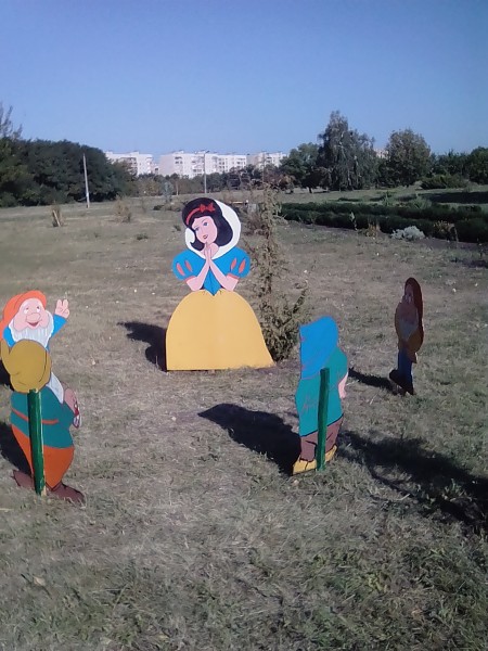 тут можна побачити: Білосніжку та гномів, сороку-ворону, барвистих метеликів, царівних жаб, змія-горинича, безліч казкових будиночків та дві альпійські гірки.