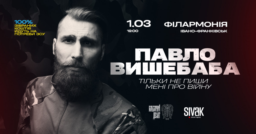 Вперше в Україні пройде благодійний тур військового та поета Павла Вишебаби. До Івано-Франківська поет завітає 1 березня. Виступ пройде в Івано-Франківській обласній філармонії.