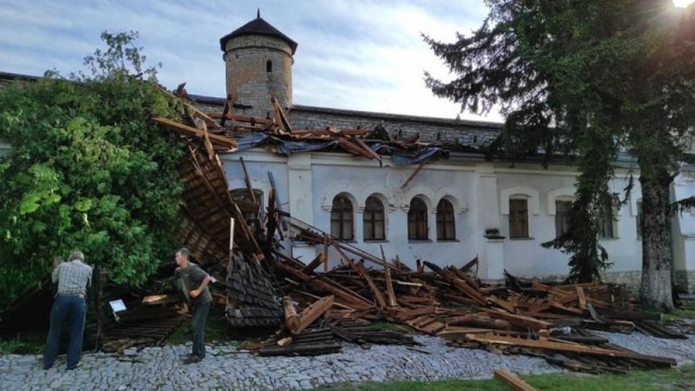 Директор Кам'янець-Подільського історичного музею-заповідника Олександр Заремба розповів, що дерев'яні конструкції накриття віднесло вітром на понад 25 метрів, пише BBC Україна.